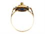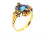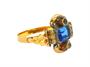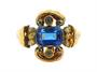 Starožitný prsten z počátku 20.století vyrobený ze zlata ryzosti 800/1000. Do stříbra ryzosti 925/1000 jsou zasazeny: modrý kámen, drobné perličky a zirkony Velikost 56. Rozměr hlavy 1,6 x 1,3 cm. Celková hmotnost 2,16 g. K dispozici je Osvědčení Puncovního úřadu.