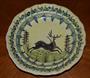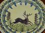 Starý lidový talíř s jelenem.Glazovaná kamenina . Neznačeno. V jednom místě odlouplá glazůra.