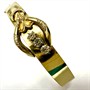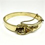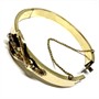 Půvabný, kruhový náramek zdobený rosetou se třemi čirými kameny. Šperk byl zhotoven ze silně zalceného obecného kovu počátkem 20.století. Díky průměru 5,8 cm je vhodný spíše na subtilnější zápěstí. Velmi dobrý stav.