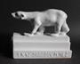Reklamní stojánek na tužky s figurou ledního medvěda. Výrobek firmy Průmyslová výroba zdravotního zboží z kameniny a pálené hlíny, společnost s r. o.; Sanitäre Steingut- und Feuerthonwaren-Industrie-Gesellschaft m.b.H., hlavní závod (sídlo) Praha, výrobní závod Jarošov nad Nežárkou. Zápis firmy 2. 4. 1926. Tvrdě pálený střep s neprůhlednou majolikovou polevou. Značeno SKW. Výška 10-12 cm, délka 14,5 cm. Publikováno in: Milan Konečný, Česká keramika, Praha 2003, str. 44.