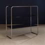Materiál-dřevěné police, ocelová chromovaná konstrukce