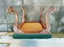 Stolička v nalezovem stavu. Calouneni v pořádku. Kousky chybi viz foto. Rozměry 60x48cm, výška 39cm