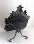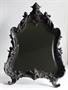 Stolní zrcadlo s opěrkou, litinové, novobarokního tvaru, s reliéfním dekorem a s andílky. Kol 1890. Modelové číslo 724. Výška 50 cm.