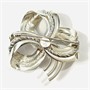 Elegantní, větší brož ve tvaru stylizované mašle, ladně tvarované křivky se středovým plastickým pásem, uprostřed doplněno kuličkou. Originální práce, patrně z 2. poloviny 30. let 20. století, dle značení jabloneckého klenotníka Bruno Czorcha.