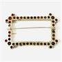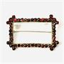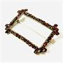Větší, geometricky pojatá brož z období art-deco, rámeček osazen českými granáty kulatého šachovnicového brusu, největší rohové kameny o nadstandardním průměru 4,5-5 mm (!), fasováno zrnkovou technikou. Původní šperk osazen polodrahokamem obdélného brusu, provedena konverze na samotný variabilnější nadčasový rámeček. Tuzemská zlatnická práce z 30. let 20. století.