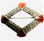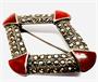 Výrazná stříbrná brož zhotovená ve stylu Art deco. Brož zdobí karneoly a elegantní markazity. Sterlingové stříbro (ryzost 925/1000), celková váha 7,75 g. Rozměry 4,2 x 3,2 cm. Elegantní šperk ve výborném stavu.