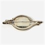 Půvabná brož, jíž vévodí oválná plochý perleťový kámen, tělo tvořeno tvarovanými trubičkami, ozdobeno uměle patinovanými listy se splétanými stonky doplněnými granulovanými kuličkami. Polská autorská práce z konce 20. či počátku 21. století.