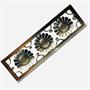 Stará, půvabná stříbrná brož zobrazující tři kopretiny. Středy pozlacené, povrch matovaný. Stříbro ryzosti 800/1000, celková váha 8,90 g. Rozměry 5,8 x 1,8 cm.
