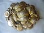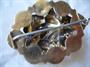 Velká stříbrná pozlacená brož, dutý věnec s aplikací vytepávané květiny, brož má na věnci drobné promáčkliny a přichycení aplikace je v jenom bodě nepůvodní. Stříbro 800, celková hmotnost 6,15, jehla obecný kov, šířka 4,8 cm.