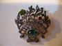 Půvabná starožitná stříbrná brož osazená broušenými kamínky (patrně skleněné), vyrobena ze stříbra 800/1000, celková hmotnost 5,55 g, rozměr 3 x 2,8 cm. Dva čiré kamínky jsou vypadlé.