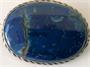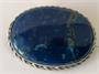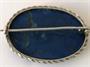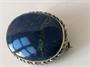 Stříbrná brož s přírodním drahým kamenem lápisem lazuli s iluzorní kresbou noční oblohy, stříbro 800/1000, celková váha 9,1 g, rozměr 4 x 3 cm.