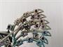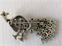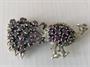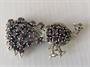 Velká masivní stříbrná brož se zasazenými broušenými fialovými kameny, zhotovena ze stříbra 925/1000, celková váha 23 g, šířka brože 6,2 cm.