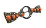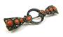 104257Stříbrná brož přírodními korály, černým smaltem a markazity