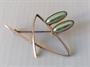 Stříbrná pozlacená brož - ve tvaru kaligrafické malby ptáčka - se dvěma listrovými kameny. Brož zhotovena ze stříbra 900/1000, celková váha 6,50 g, šířka brože 5 cm. Podle puncovního značení byla brož zhotovena v 50. letech 20. stol., její návrh byl ovlivněn patrně podle v té době populárních čínských kaligrafických kreseb mistra Či - paj - šiho.