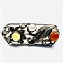 Půvabná stříbrná brož s nevšedně ztvárněným florálním motivem. Stříbro ryzosti 835/1000, celková váha 8,08 g. Šperk zdobí karneol a achát hladkého kulatého brusu kabošon a bílá perla. Rozměry 4,5 x 1,8 cm. Výborný stav.