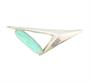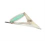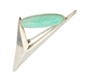 Nadčasová, minimalistická brož ze stříbra ryzosti 813/1000 původem z Finska, zdobená kabošonem amazonitu. Původ šperku okolo 1950. Rozměry 5,5 x 2,1 cm. Celková hmotnost 4,05 g. Skandinávský design. Jehla je z obecného kovu.