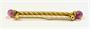 Elegantní úzká brož s todorovaným tělem, které je zakončeno kuličkami přírodního ametystu na granulovaném lůžku. Nadčasový šperk z 2. poloviny 20. století, kvalitní netuzemská zlatnická práce.