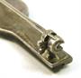 Stříbrná brož rondokubistického tvaru zdobená černým onyxem s markazity. Stříbro ryzosti 925/1000. Rozměry: 6 x 1,5 cm. Celková hmotnost: 8,25 g.