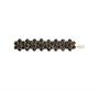Jednoduchá stříbrná brož ryzosti 900/1000 s českými granáty. Celková hmotnost bože je 4,78 g. Rozměry jsou 4,8 x 1 cm.