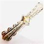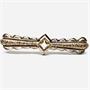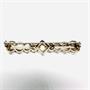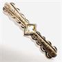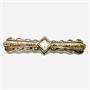 Elegantní, nevšední podlouhlá brož ze stříbra. Šperk na středu zdobí fazetově, do čtverce vybroušený citrín světlejšího odstínu. Středová část zdobena ručním gravírováním. Brož byla vyrobena v první polovině 20.století ze stříbra ryzosti 835/1000. Celková váha 6,89 g. Délka 5,6 cm. Výborný stav.