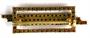 Geometrická brož z pozlaceného stříbra ryzosti 900/1000 po celé své délce zdobená českými granáty.