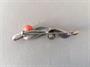 Půvabná brož osazená kuličkou růžového korálu, zhotovena ze stříbra 925/1000, celková hmotnost 5,3 g.