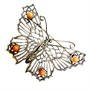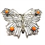 Jemná, velmi půvabná brož znázorňující motýla. Šperk byl zhotoven ze sterlingového stříbra (925/1000) o celkové váze 5,22 g. Rozměry 5 x 3 cm. Brož zdobí čtyři korály lososového odstínu a řada markazitů. Výborný stav.