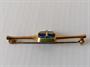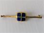 Stříbrná pozlacená brož zajímavě osazená imperiálním lápisem lazuli, zhotovena ze stříbra 925/1000, celková váha 5,5 g, šířka brože 5,5 cm.