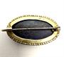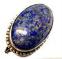 Malebná brož oválného tvaru. Bohatě inkludovaný lápis lazuli je elegantně zarámován klasicistním dekorem. Šperk byl zhotoven ze stříbra ryzosti 800/1000, o celkové váze 7,41 g. Rozměry 3,6 x 2 cm. Výborný stav.