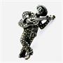 Originální, stříbrná, prvorepubliková brož - hráč na kytaru. Šperk byl vyroben v první polovině 20.století ze stříbra ryzosti 835/1000, o celkové váze 6,50 g. Brož zdobí velké množství lesklých, třpytivých markazitů. Kameny jsou pečlivě zafasovány. Realistické, detailní ztvárnění. Výška 3,4 cm. Výborný stav.
