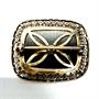 Elegantní stříbrná brož ze zlaceného stříbra. Šperku dominuje černý onyx na středu kontrastně dozdoben bílou perlou. Netradiční ryzost stříbra 850/1000. Osvědčení Puncovního úřadu. Celková váha 7,30 g. Rozměry 3,4 x 2,6 cm. Výborný stav.