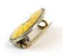 Brož ze stříbra ryzosti 930/1000 zdobená smaltem a bižuterní perlou. Celková hmotnost: 3,68 g. Rozměry: 2,4 x 1,4 cm. ---