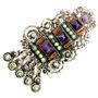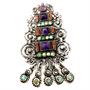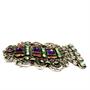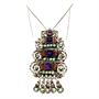 Unikátní, výrazná stříbrná brož, jenž může být užívání díky závěsnému očku i jako závěs. Šperk byl zhotoven ze sterlingového stříbra (925/1000), o celkové váze 19,45 g. Zdobí jej do jehlanu vybroušené ametysty sytě fialového odstínu, tyrkysy a červené korály. Drahokamy jsou přírodního původu. Rozměry cca 7 x 4 cm. Signováno. Perfektní stav.