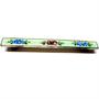Malebná, drobná stříbrná brož zdobená celoplošným smaltem s jemným, florálním motivem. Šperk byl zhotoven ze stříbra ryzosti 800/1000, o celkové váze 4,05 g. Rozměry 5,4 x 0,5 cm. Výborný stav.