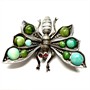 Půvabná, velmi stará, výrazná brož - motýl. Šperk zdobí přírodní tyrkysy v místě křídel a dva drobné almandiny na místě očí. Šperk byl zhotoven ze stříbra ryzosti 800/1000, o celkové váze 7,30 g. Jehla z obecného kovu. K broži je vyhotoveno osvědčení Puncovního úřadu. Rozměry 3,5 x 2,5 cm. Výborný stav.