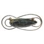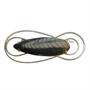 Nevšední brož ze stříbra ryzosti 925/1000 zdobená zkamenělinou (orthoceras). Rozměry 5,5 x 2,5 cm. Celková hmotnost 10,90 g.