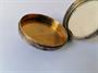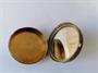Stříbrná krabička krásně gravírovaná, uvnitř se zrcátkem, je zhotovená ze stříbra ryzosti 800/1000, celková hmotnost 24,7 g, průměr 4 cm, výška 1 cm.