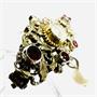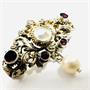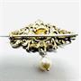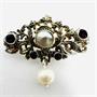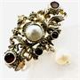 Velmi stará, ručně prořezávaná brož. Šperk zdobí do cargle zasazené hladce broušené granáty, na centrálním místě perleťovina a kinetický, perlový ověs. Zadní část decentně zlacená. Brož byla zhotovena v 19.století ze stříbra nevšední ryzosti 710/1000, ověs s perlou 925/1000. Rozměry cca 3,5 x 2 cm. Profesionálně vyčištěno, výborný stav.