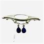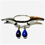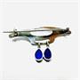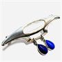 Sbírková, velmi půvabná stříbrná brož. Šperk je osazen měsíčním kamenem na středu, který byl kontrastně dozdoben ověsy s lápisem lazuli ve tvaru kapky. Ryzí secesní forma. Stříbro ryzosti 900/1000, celková váha 5,45 g. Rozměry 4,5 x 2,4 cm. Označeno DEPOSE - známka autorské ochrany. Perfektní, sbírkový stav.
