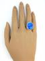 Stříbrná souprava s modrými kameny, stříbro ryzosti 925/1000, velikost prstenu 52, délka řetízku 38 cm. Celková hmotnost 22,65 g.
