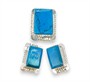 Souprava - náušnice a brož/přívěsek ze stříbra 925/1000 zdobené tyrkysem. Hmotnost brože 20,44 a hmotnost náušnic 29,93 g. Rozměry brože 3,7 x 2,8 cm a rozměry náušnic 3 x 1,9 cm.