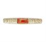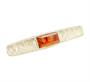 Nadčasová spona na kravatu ze stříbra ryzosti 835/1000 zdobená jantarem. Celková hmotnost 7,70 g. Délka 5 cm. Typická 60. léta 20. století.