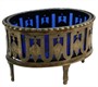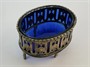 Stribrna stolní slánka zhotovená v secesním stylu. Skelet ze stříbra ryzosti 900/1000, Váha stříbra 32 g a je vyplněna vyjímatelnou miskou z kobaltového skla. Krásná původní zlatnické práce