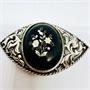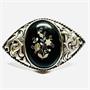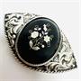 175385Stříbrná velká brož s dřevem inkrustovaným perletí