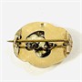 Zhotoveno ze zlaceného stříbra o ryzosti 800/1000, zapínání z obecného kovu; vyhotoveno osvědčení puncovního úřadu, mistrovská značka "ER" zezadu. Hmotnost 3,05 g, délka 26 mm, šířka 21 mm. Opravované zapínání na „C“ sponu v pořádku, lehké stopy nošení, jinak v dobrém stavu, odborně vyčištěno a vyleštěno zlatníkem.