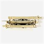 Zhotoveno ze zlaceného stříbra o ryzosti 800/1000; rakousko-uherský dovozový punc S-32 (AV) s písmenem "B" (značící linecký puncovní úřad) na jehle a sponě. Hmotnost 4,86 g, délka 48 mm, šířka 14 mm. Zapínání na “C“ sponu v pořádku, celkově v zachovalém stavu, odborně vyčištěno a vyleštěno zlatníkem.