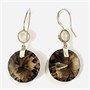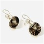 Extravagantní, designové visací náušnice s dominantními ověsky s přírodními záhnědami atypického kulatého brusu, nad nimi v hladké obrubě osazeno kulatými muglemi přírodních měsíčních kamenů. Nápaditá, kvalitní západoevropská práce z první pětiny 21. století.