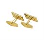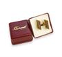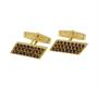 Manžetové knoflíčky ze zlaceného stříbra ryzosti 925/1000 zdobené českými granáty. Rozměry 2,2 x 0,7 cm. Celková hmotnost 6,86 g. Původní značková krabička Granát Turnov.