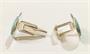 Velké stříbrné oválné manžetové knolíčky osazeny světle modrým leštěným kamenem, kolem něj paprskovité gravírování. Nadčasový a elegantní šperk. Zhotoveno v bruselském stylu, který byl populární v 60. letech 20. století. Zhotoveno ze stříbra o ryzosti 900/1000; punc S-67 (zajíc 3) u zapínání, též opatřeno ryzostním číslem a mistrovskou značkou A. Hmotnost je 14,58 g. Délka hlavice je 23 mm, výška je 19 mm. Ve velmi dobrém stavu, zapínání plně funkční.