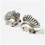 Elegantní, designové náušnice v podobě ladně stylizovaných listů, kontrast mělkých a hlubokých plastických ploch. Díky své lehké váze se pohodlně nosí. Velmi kvalitní šperkařská práce z 50. let 20. století z dílny světoznámého dánského návrháře Nicolase Erika Forma.